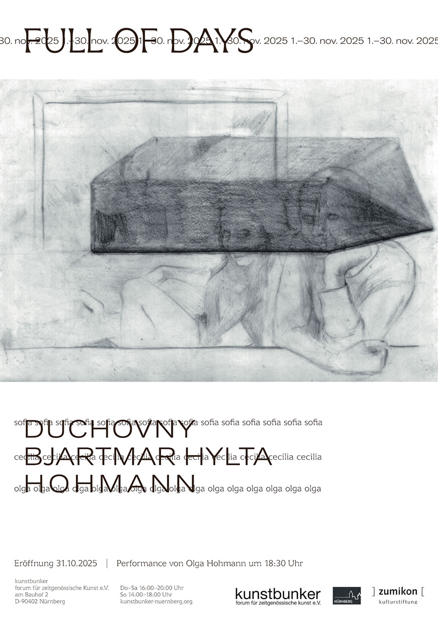 We are excited to invite you to the exhibition „Full of Days“ at kunstbunker – forum für zeitgenössische kunst e.V.