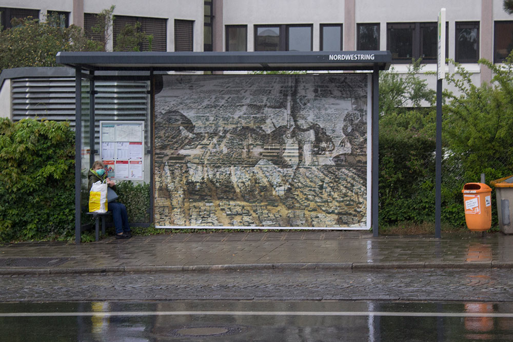 Die Ausstellung KUNSTBUNKER NÜRNBERG 2020 von Katharina Sieverding im öffentlichen Raum war ursprünglich dafür gedacht die Aktivitäten des kunstbunker – forum für zeitgenössische kunst e. V. für ein breiteres Publikum sichtbar zu machen. Normalerweise finden die Ausstellungen und Veranstaltungen, die der kunstbunker als Initiative von Künstler*innen und Kulturschaffenden in Eigenregie durchführt, nämlich in einem ehemaligen unterirdischen Schutzbunker in der Nürnberger Innenstadt statt. Das setzt die Bereitschaft der Besucherinnen und Besucher voraus, diesen verborgenen Ort erst einmal zu finden. Durch die Auswirkungen der Covid-19-Pandemie hat das Projekt nun allerdings eine zusätzliche Dimension bekommen, indem es die unmittelbare Begegnung mit Kunst unter erschwerten Bedingungen ermöglicht – so lange an einen geregelten Ausstellungsbetrieb, normalen Publikumsverkehr nicht zu denken ist.